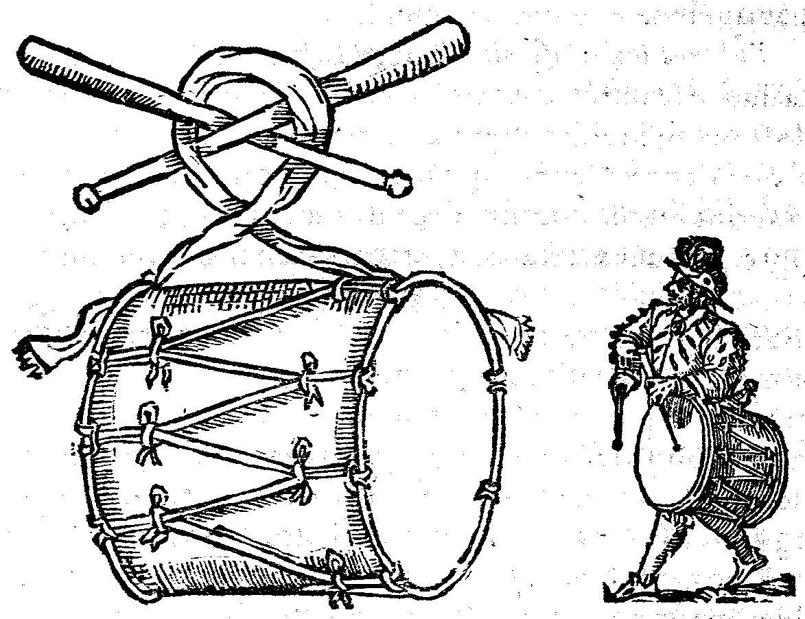 C'est pourquoy, en la marche de la guerre, le françois à faict servir le tambour pour tenir la mesure, suivant laquelle les soldats doibvent marcher. combien que la plus grand part des soldats n'y sont guieres bien exercés, non plus qu'en tout le reste de l'art militaire, mais pour cela je ne laisseray d'en escripre les modes.