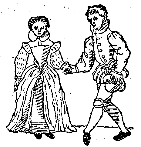 En premier lieu, quand vous serés entré au lieu, ou est la cómpagnie preparée pour la dance, vous choisirés quelque honneste damoiselle telle que bon vous semblera. & ostant le chappeau ou bonnet, de vostre main gaulche, luy tendrés la main droicte pour la mener dancer. Elle sage & bien aprise, vous tendra la main gaulche, & se levera pour vous suyvre. Lors la conduyrés au bout de la salle, a la veüe d'un chacun, & advertirés les joueurs d'instrumentz de sonner une basse dance. Car aultrement ilz pouroient sonner par inadvertence quelque aultre sorte de dances. Et quant ilz commenceront à sonner, vous commencerés à dancer. Et notterés que leur demandant une basse dance, ilz entendront assés qu'en demanderés une reguliere & commune: toutesfois si lair d'une chanson sur laquelle est formée une basse dance vous aggreoit plus que d'une aultre pourrés leur nommer le commencement de la chanson.
