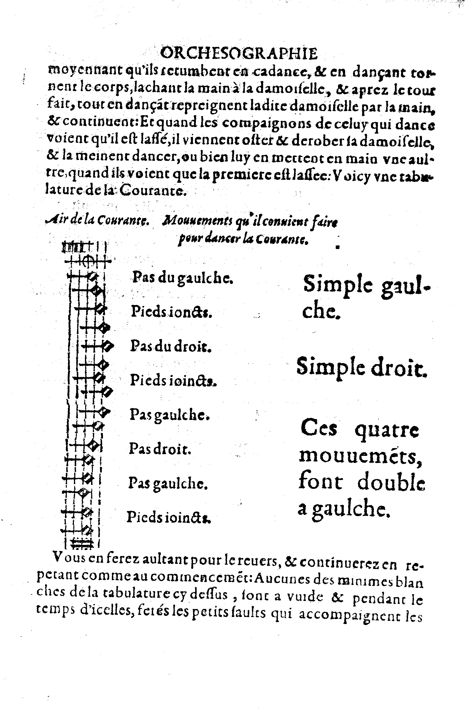 | Air de la Courante. | Mouvements qu'il convient faire pour dancer la Courante. | |