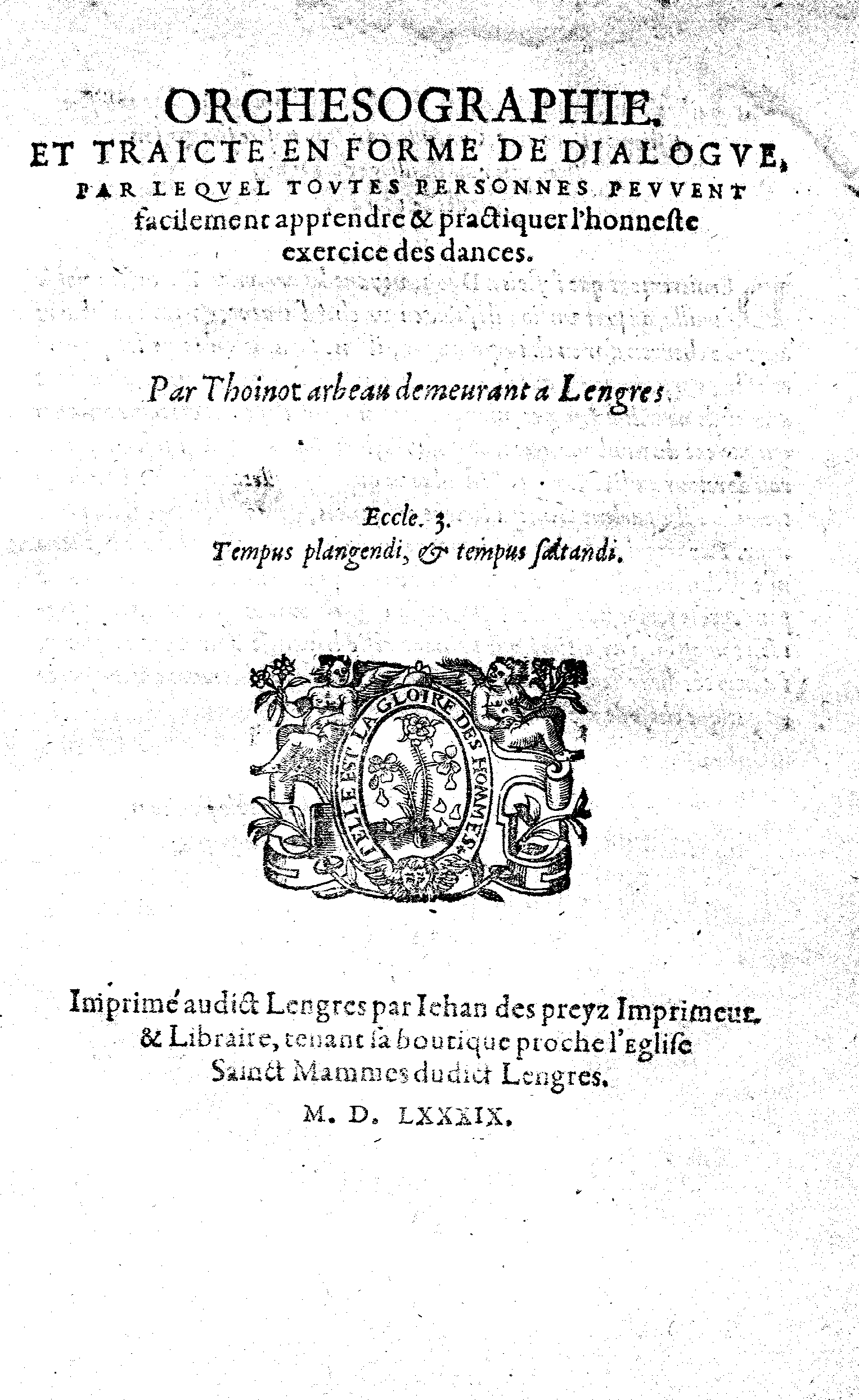 de l'Orchesographie réalisés par